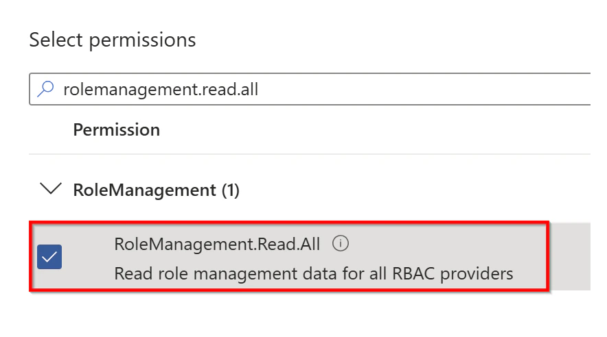 7. Search for the RoleManagement.Read.All permission and check the box next to it.