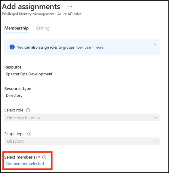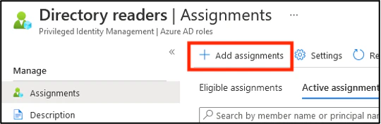 2. In the “Directory Readers” role, select Add assignments.