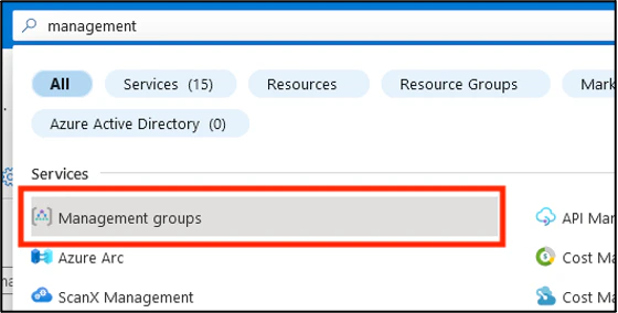 2. Search for and select the Management groups item in the top search bar.
