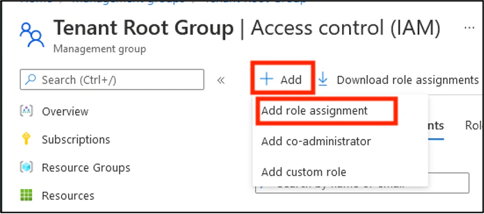 Grant “Reader” role on all Azure subscriptions