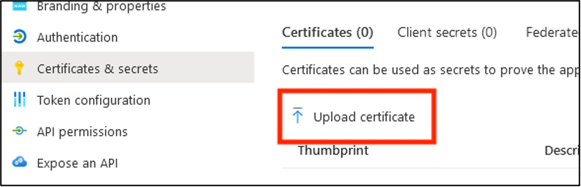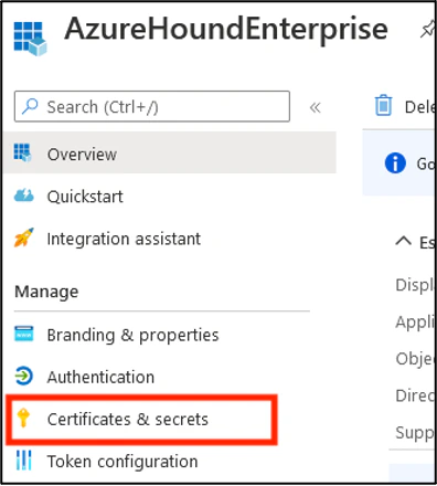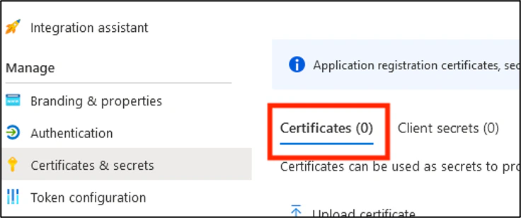 1. Select the Certificates & secrets section on the left.