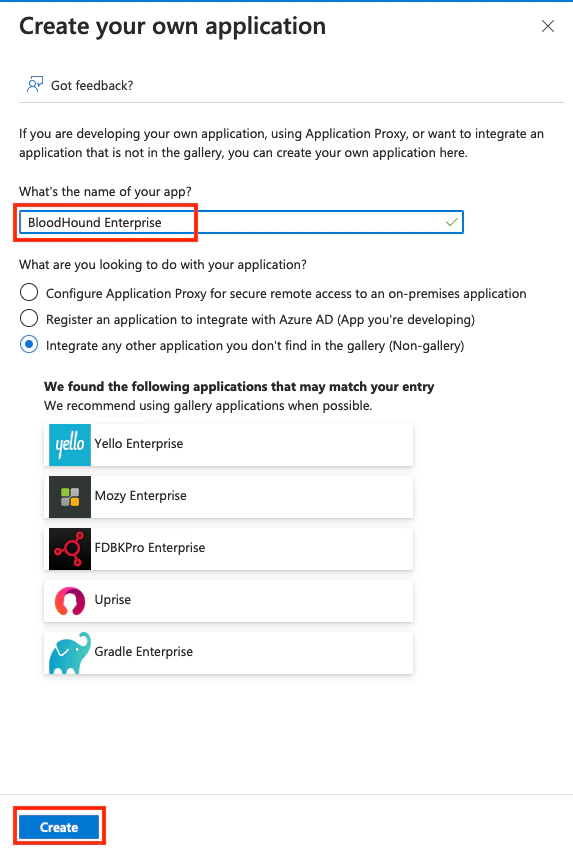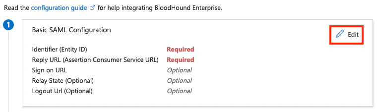 1. Use the downloaded metadata.xml file and follow the instructions at SAML in BloodHound Enterprise to Create the SAML Configuration in BloodHound.