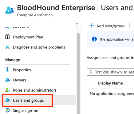 1. Use the Users and Groups section to configure groups and users which you would like to grant access to BloodHound Enterprise.